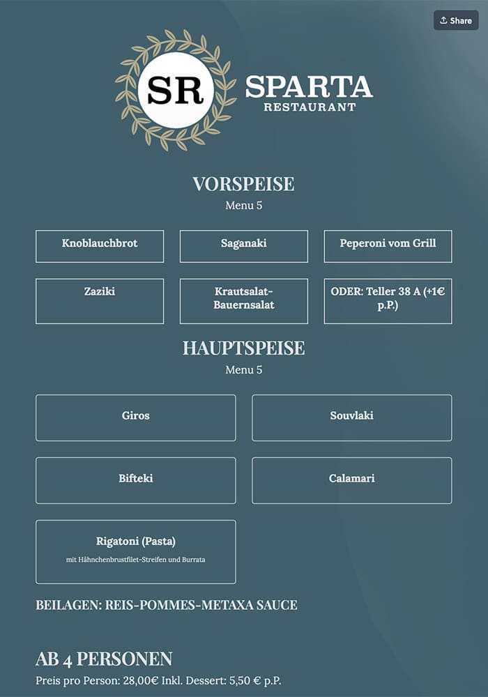 Unsere 120 Innenplätze in stimmungsvollem, traditionellem griechischem Ambiente plus der 80 Außenplätze in unserem beheitzten Sommergarten, sind bestens geeignet für Ihre privaten und geschäftlichen Anlässe/Feiern: